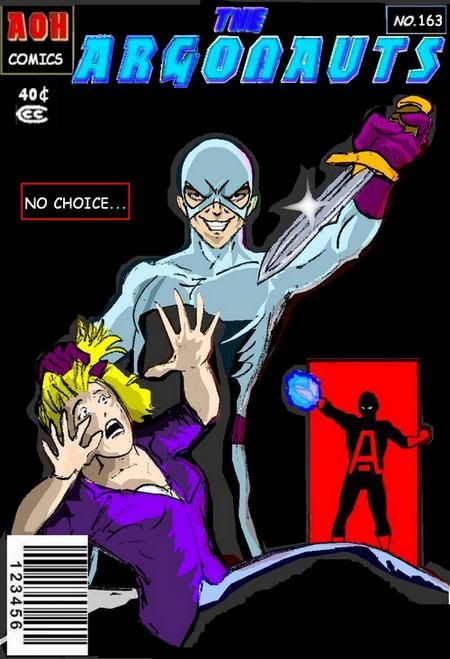 Above (Mock Cover) The Argonauts thwart yet another attack by the tenacious Robotmaster.